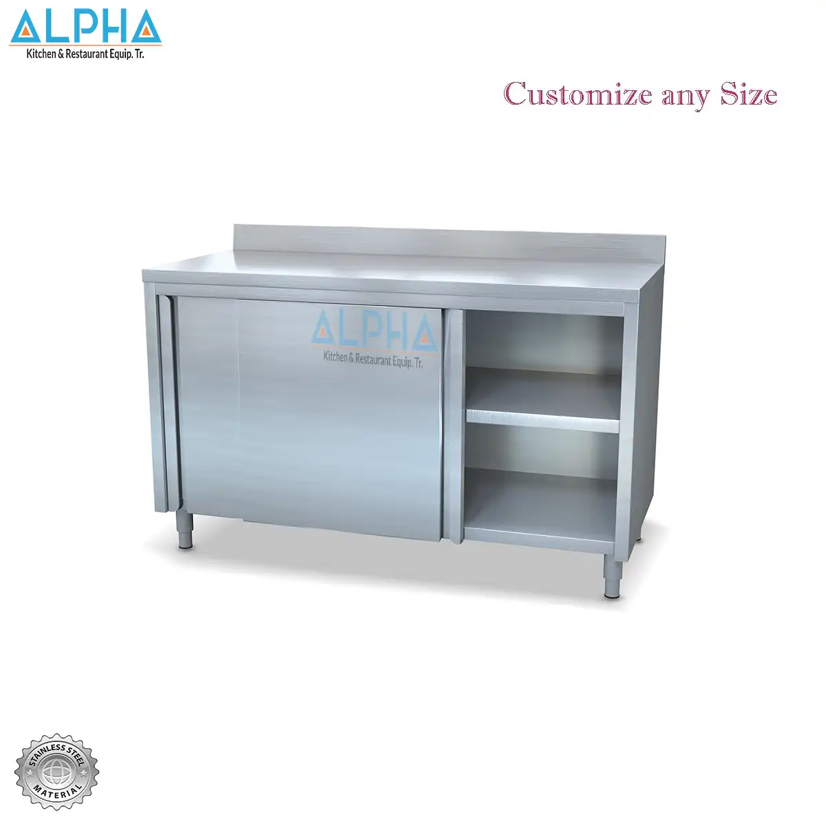 Professional stainless steel cupboard tables, available in various sizes and compositions also on design.