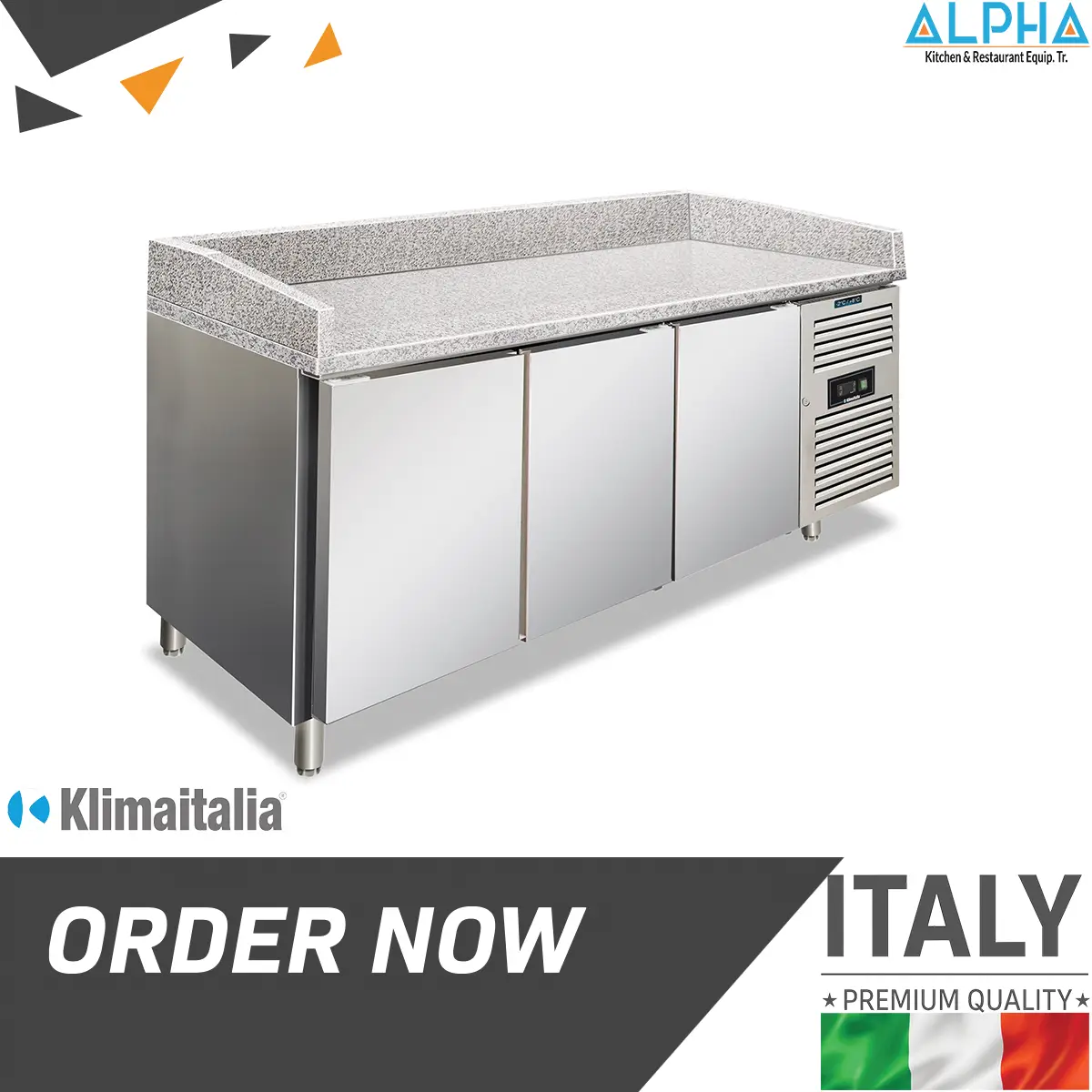 The PZF-03 Pizza Preparation Bench is a professional-grade refrigerated unit, designed to meet the high demands of pizzerias and foodservice businesses. Crafted entirely from AISI 304 stainless steel, it ensures maximum durability, hygiene, and long-term performance. With three self-closing doors and spacious internal compartments, this pizza bench offers excellent storage for dough trays, ingredients, and condiments.