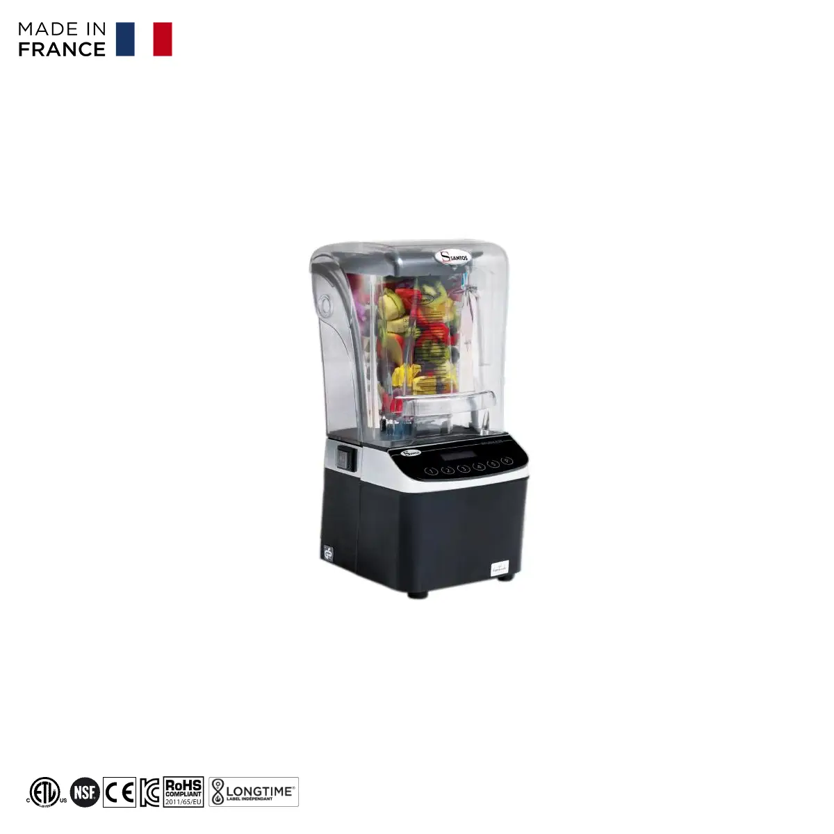 Very quiet thanks to its new soundproof hood, brushless motor and vibration-proof jar mat.